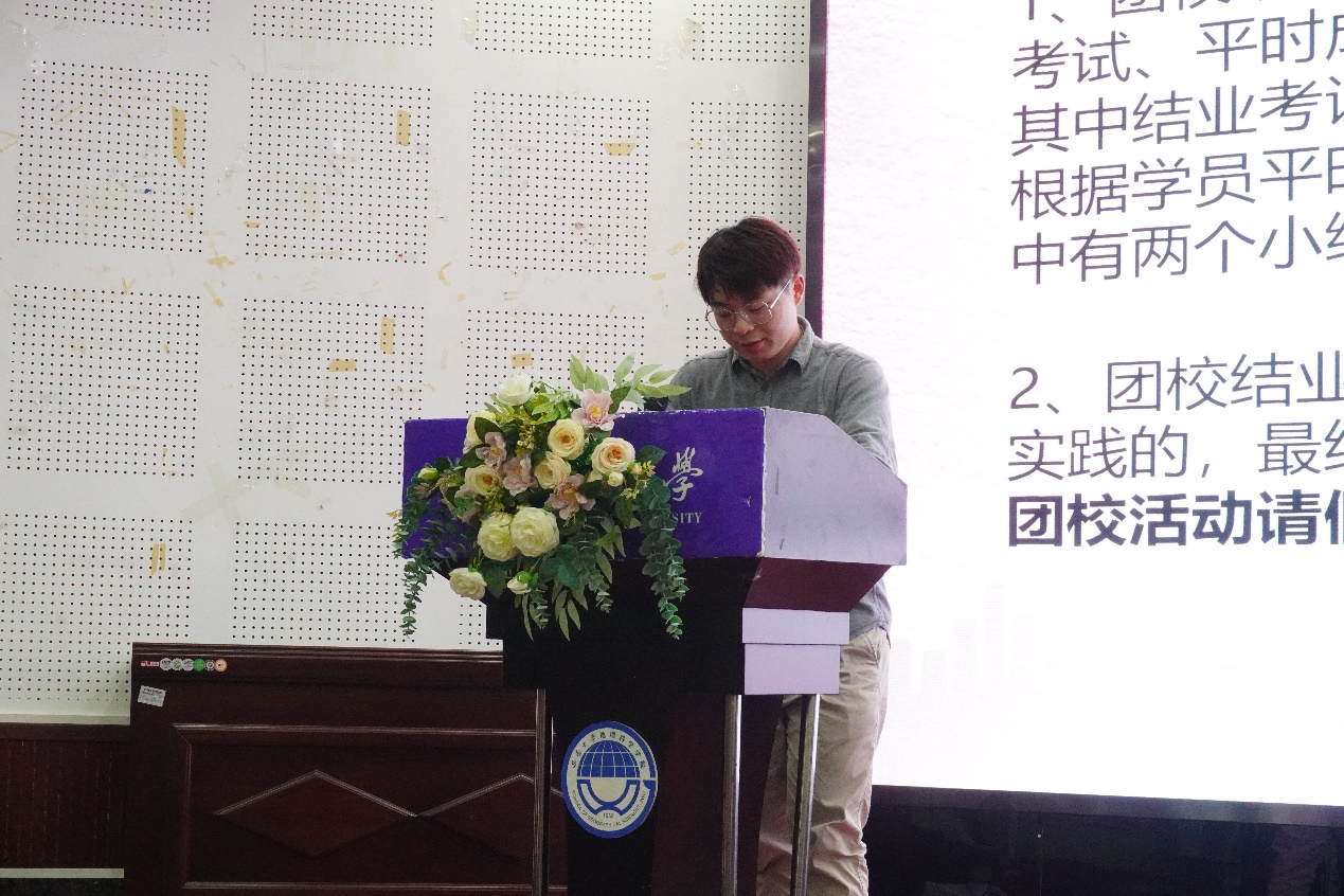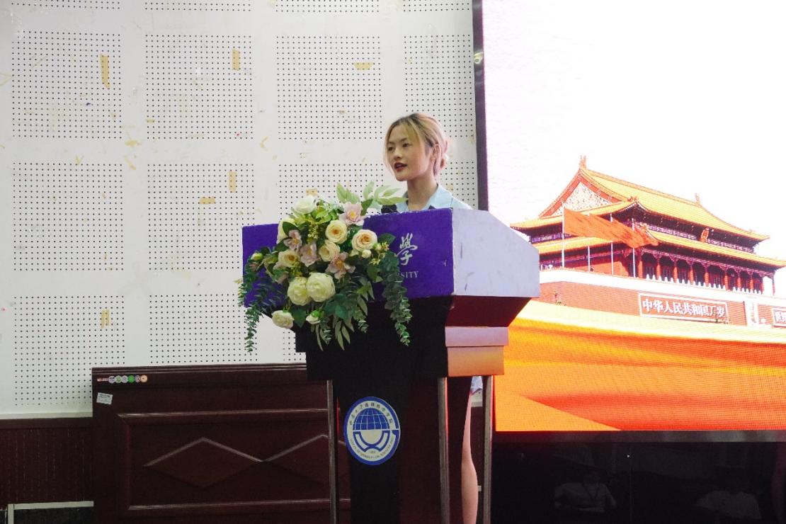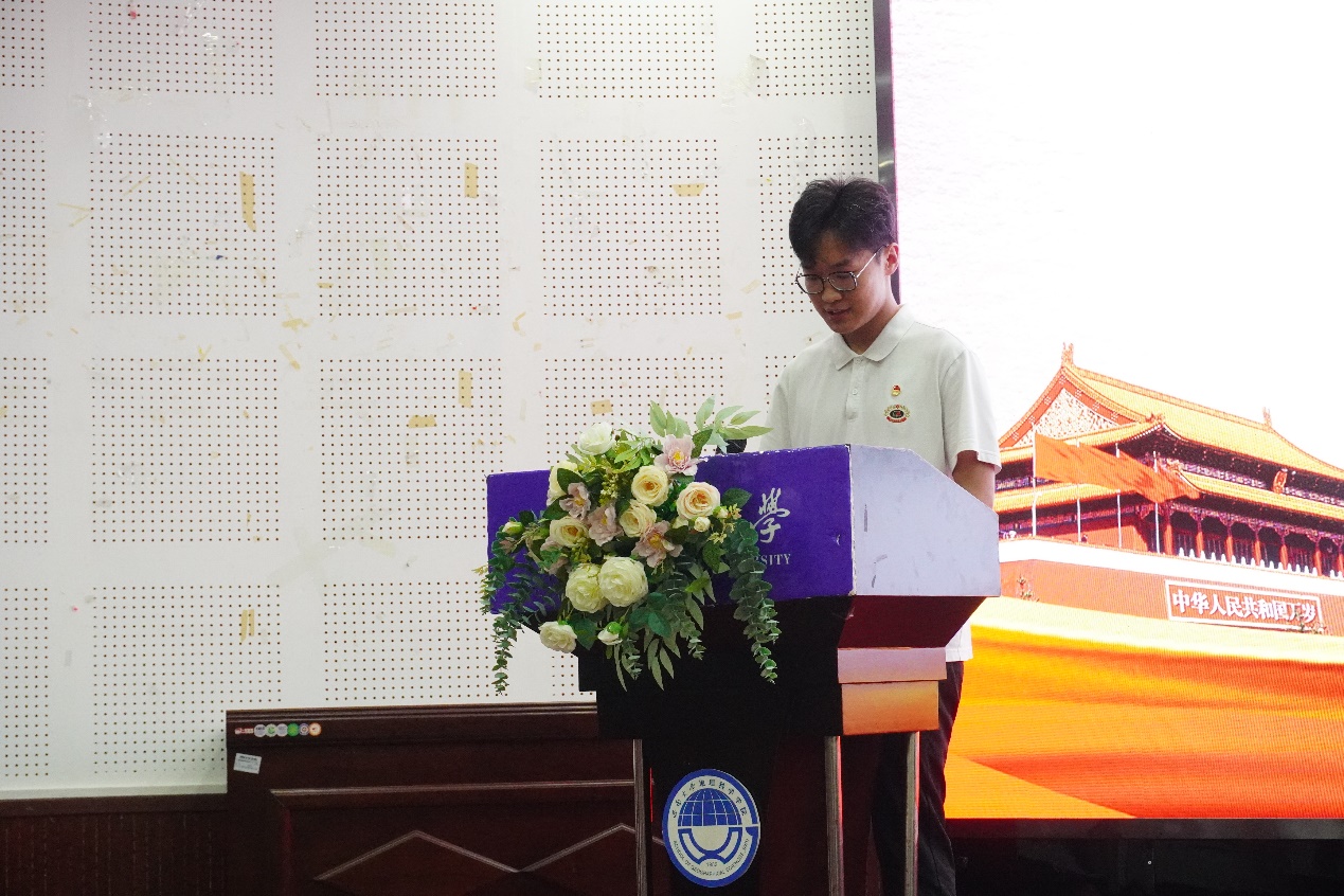 紧接着,第二期团校学员代表21级颜冰洁同学发言,她对本次团校活动背景及意义进行了表达了自己的详细观点,回望概述了党组织,团组织在国家建设,民族复兴历程中的重要作用,向与会代表发出努力提升自我,不负时代重任的呼吁,彰显出青年团员一心向党,拥护组织的信念与精神。