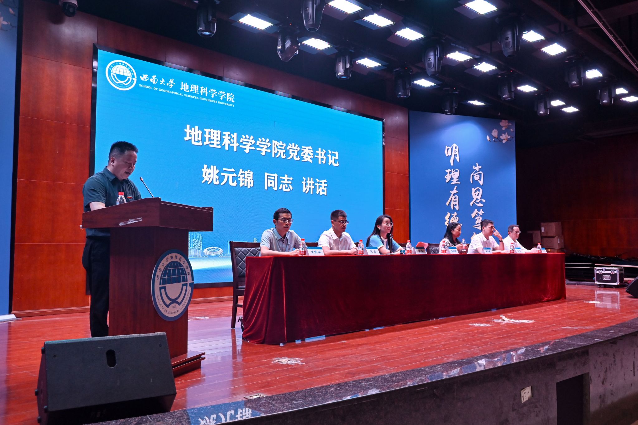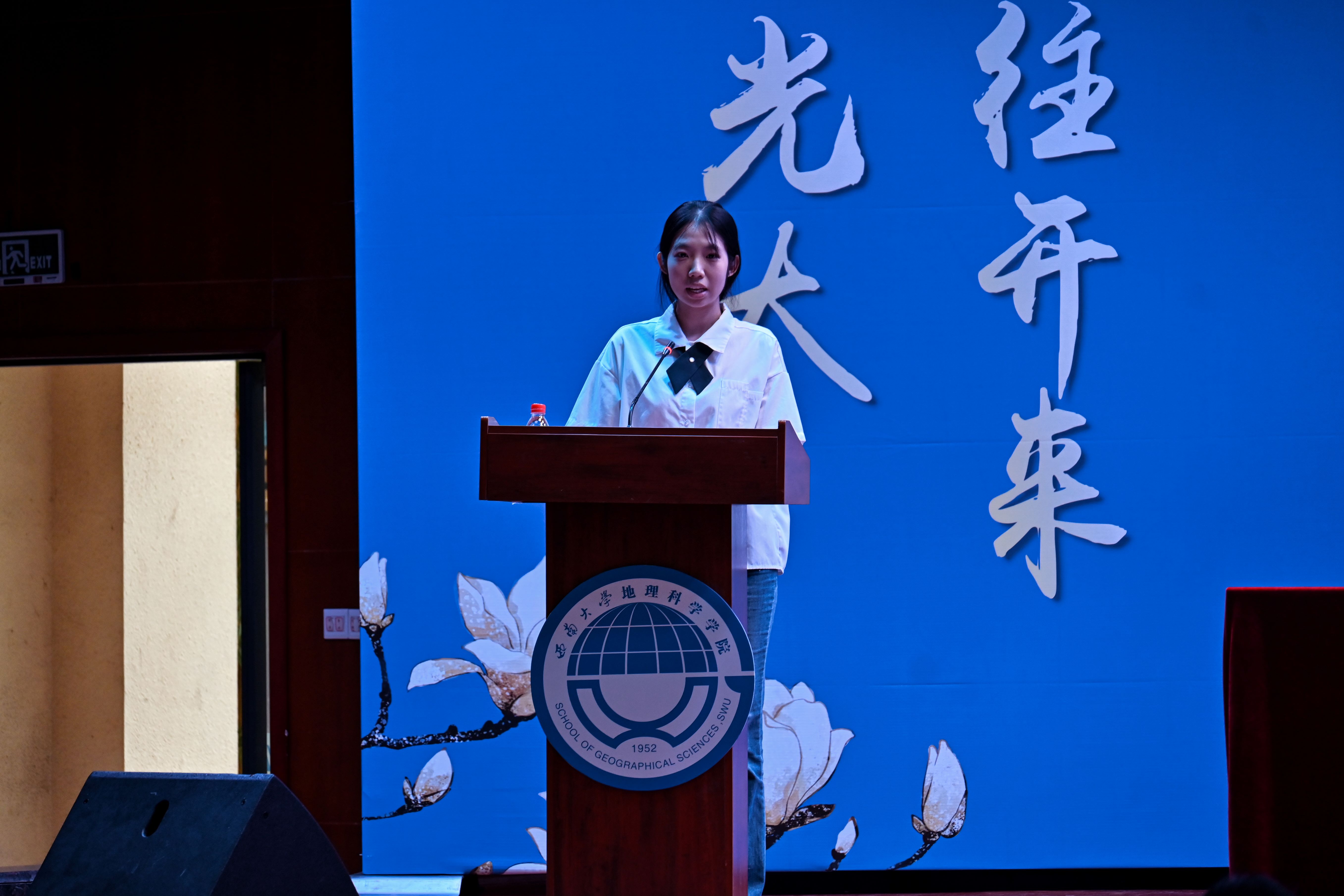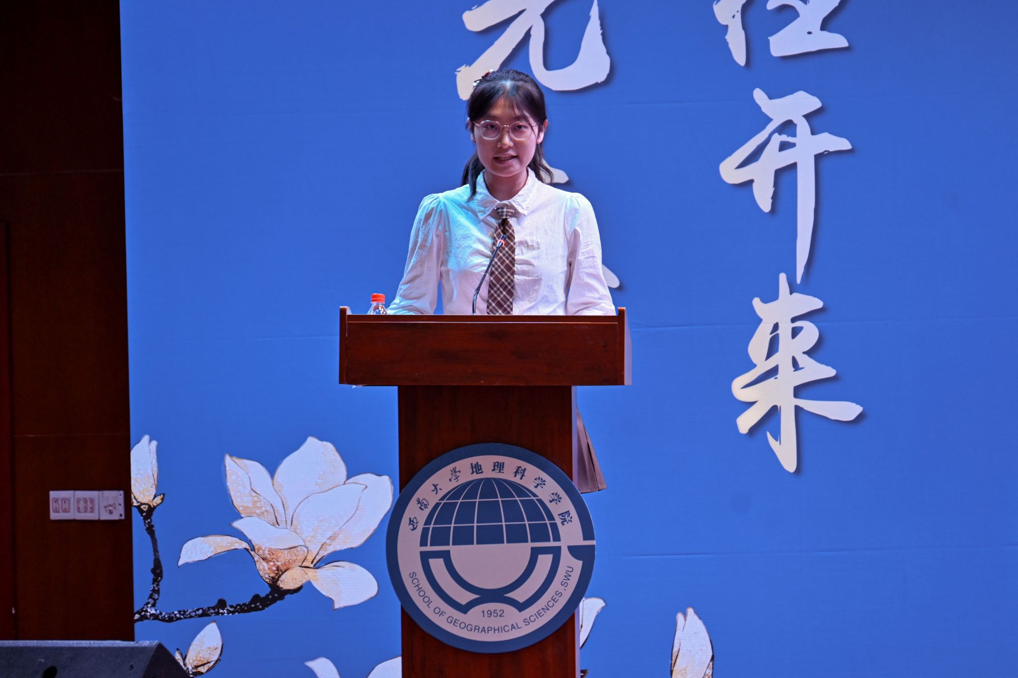 2024级地理科学(师范)专业本科生陈睿彤作为新生代表发言,她表达了自己对老员工活的期待和对地理科学专业的热爱,号召同学们勇敢追逐梦想,勤勉学习。2021级地理信息科学本科生范美怡和2022级地图学与地理信息系统专业硕士研究生常智健分别作为本科生与研究生的老生代表发言。范美怡向学弟学妹们表示欢迎和祝福,激励大家珍惜时间、不断尝试,在科研道路上探索求知;常智健则告诫新生们要学思想、学方法、学态度,珍惜“滚烫的青春”,做自己的“天命人”。