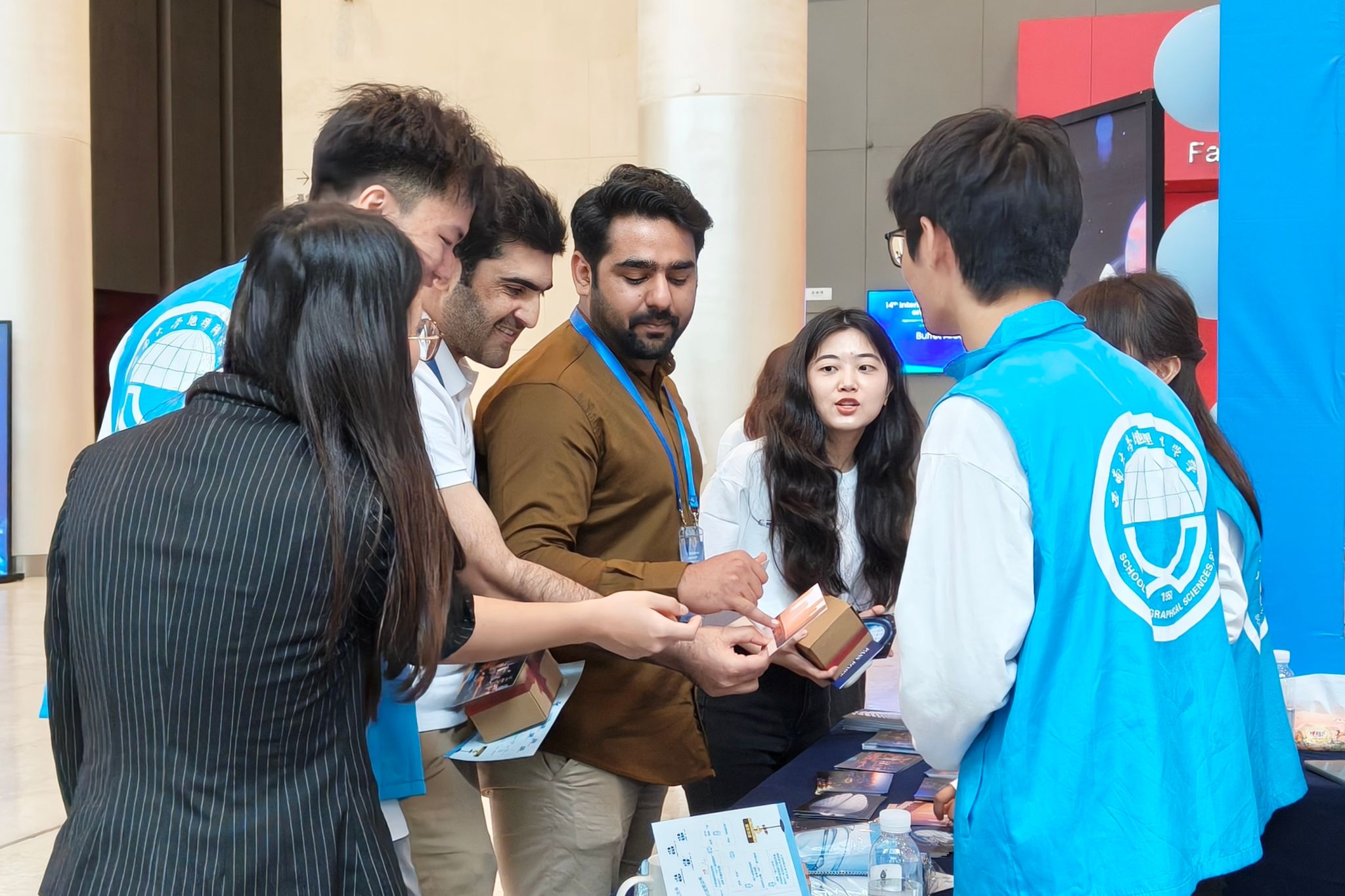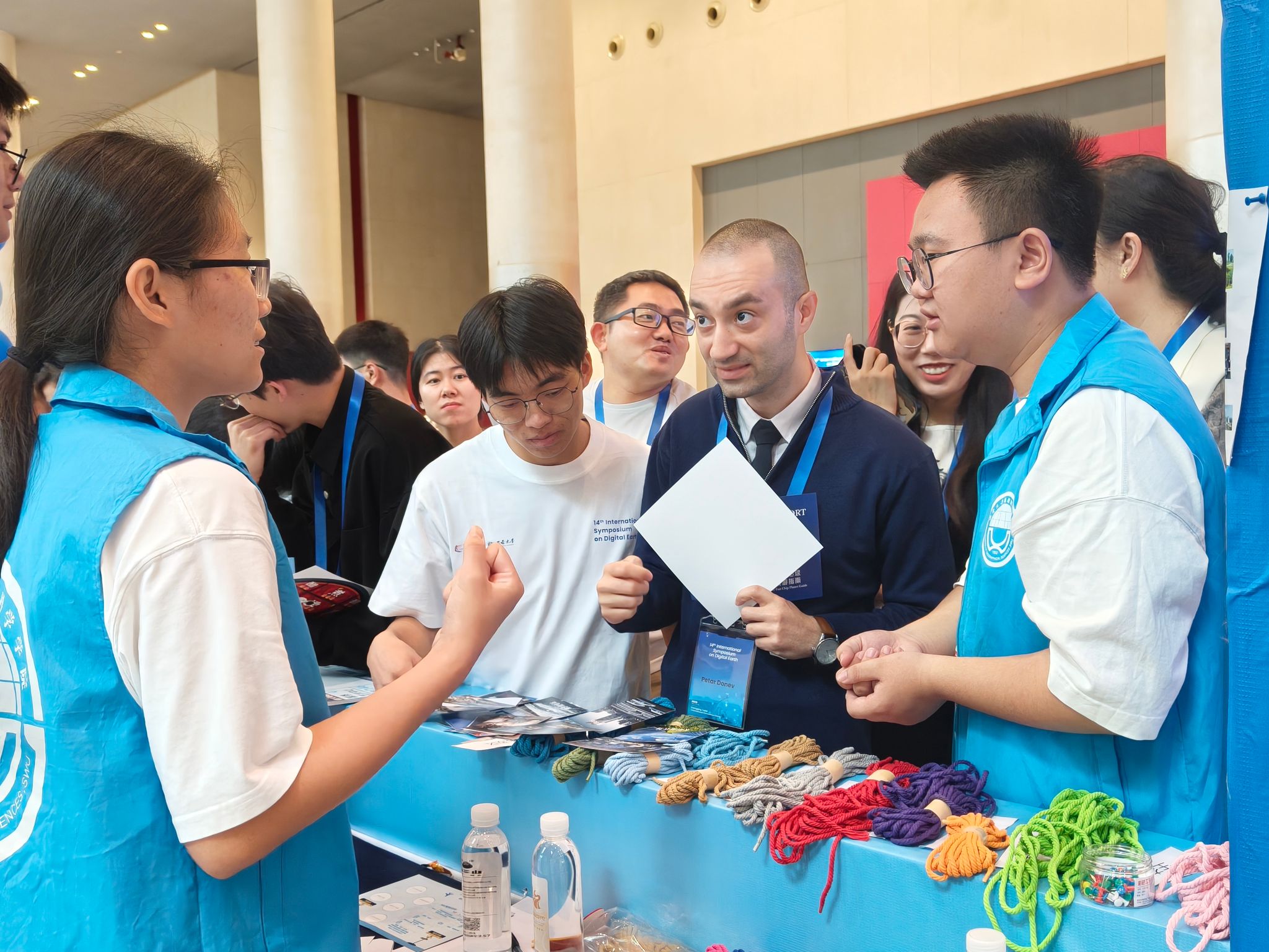 本次嘉年华游园会活动生动有趣,参加数字地球大会的学者与员工踊跃参与,热烈的游戏氛围还吸引了许多外国友人积极加入。游戏点的工作人员热情介绍,让外国友人也体会到游戏的乐趣,同时展现出地科学子大方得体的精神风貌。