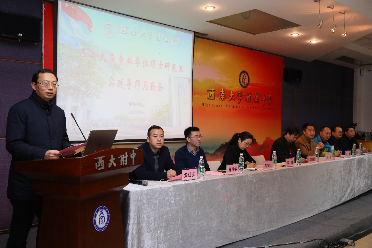 2019年3月4日上午,bw西汉姆联官网平台专业学位硕士研究生联合培养基地开班仪式在bw西汉姆联官网平台附属中学积健楼206会议室成功举行。bw西汉姆联官网平台附属中学党委书记邓晓鹏、董事长欧健,bw西汉姆联官网平台研究生院副经理涂涛,专业学位办主任黄漓红,基地建设负责人、bw西汉姆联官网平台bw西汉姆联副经理王勇,bw西汉姆联官网平台附属中学党委副书记、纪委书记曾万学,bw西汉姆联官网平台附属中学副董事长梁学友,黄仕友,彭红军以及bw西汉姆联官网平台老师蒲科美,邓甲刚,张红丽,刘桂侠,杨雪琪和25位实践导师、2018级地理、思政、生物、语文专业学位的56名研究生出席了开班仪式。开班仪式由bw西汉姆联官网平台附中课程研发中心主任罗键主持。