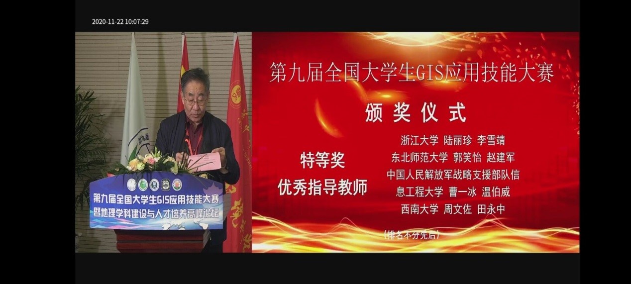 2020年11月20日至11月22日,第九届全国老员工GIS应用技能大赛在华中师范大学举行。在疫情防控的形势下,今年全国老员工GIS应用技能大赛采取远程监控下的网络竞赛形式。来自全国151所高校的151支队伍参赛,经过激烈角逐,安徽师范大学、电子科技大学、东北师范大学、南京师范大学、山东科技大学、华中师范大学、华东师范大学、华南师范大学、bw西汉姆联官网平台、武汉大学、浙江大学、中国人民解放军战略支援部队信息工程大学、中南大学13个代表队获特等奖。这是bw西汉姆联官网平台代表队继2019年第八届专业大赛后再次获得全国专业大赛特等奖。