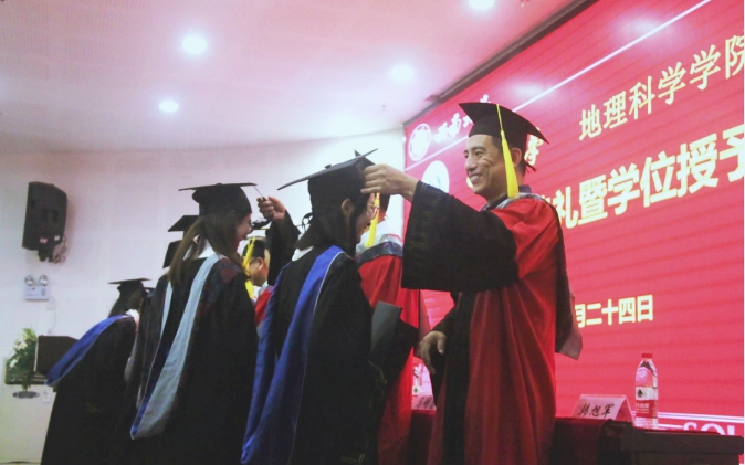 2017级地理科学专业程贵山同学代表2021届毕业生发言,他在发言中回顾大学四年美好时光,衷心感谢母院的辛勤培育,并祝愿毕业生前程似锦、扬帆起航。2020级地理科学(师范)专业王美泽同学代表低年级员工向学长学姐们表达衷心的祝福,祝愿他们毕业快乐,前程万里。教师代表宗会明教授寄语毕业生,希望毕业生们保持勤学好问的学习态度和积极向上的生活态度;要秉持善良、坚守底线、拒绝躺平、迎难而上,争做时代追梦人。