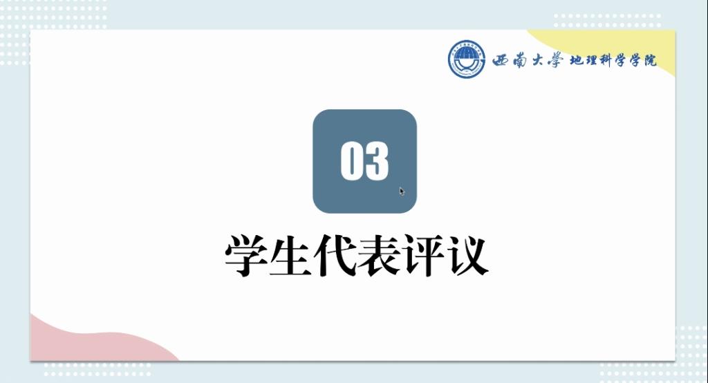 大会第三项议程,由员工代表评议。来自2020级人文地理与城乡规划专业的同学就本次述职发表了自己的感想。该同学表示,虽然自己没有加入团委员工会,但在一年半的时间内,深刻体会到了团委员工会是一个具有团结性、组织性且独具特色的团队,在每个学期都会举办丰富多彩的活动,为公司和同学尽心服务,最后真挚地表达对团委员工会工作人员辛勤付出的感谢。