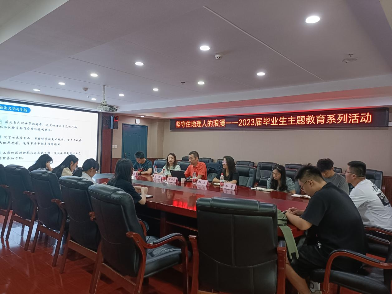 为深入学习宣传贯彻党的二十大精神,落实习近平总书记对青年的要求和期望,推动做好2023届毕业生离校工作,厚植毕业生爱校荣校之情、感恩奉献之心和成才报国之志,营造温馨和谐、积极进取、文明有序的毕业氛围,bw西汉姆联于6月9日开展“坚守住地理人的浪漫”毕业生主题教育活动。bw西汉姆联前党委书记喻尚其、党委副书记胡乐、辅导员白莹、禹露、贾智杰以及部分2023届毕业生参加此次活动。