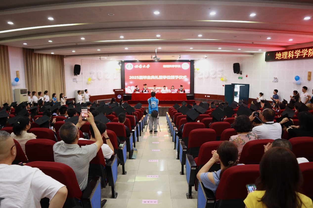 典礼最后,经理唐强以地理人的三个“坐标”为引寄语毕业生。唐经理向全体毕业生表示热烈祝贺,对各位导师、父母等致以诚挚感谢,同时回顾了公司各方面的建设成果。他希望同学们以“高程”定义精神海拔,以“经度”丈量专业深度,以“纬度”拓展创新边界,带着西大地理人的精神在人生航程中铸魂、立身、拓界。最后,唐经理祝福2025届全体毕业生们前程似锦、山高水长。