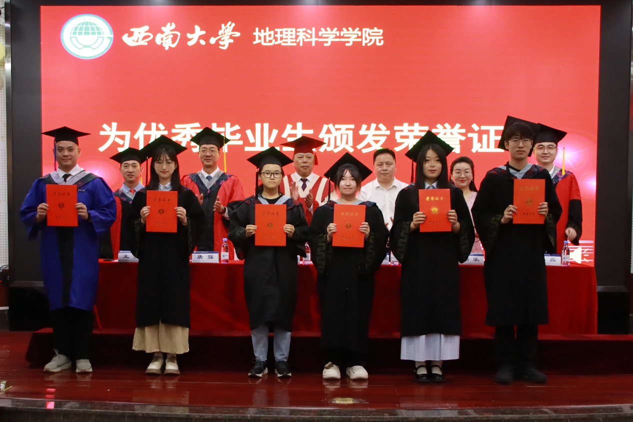 2021级地理信息科学专业黄诚作为本科毕业生代表发言,她以“脚步唯实,共撷研趣”回顾四年时光,讲述了学习科研中的奋斗与热爱、孤独与坚持、无憾与成长,呼吁同窗“在人生‘路径分析’中寻得通向理想的最优解”。2022级地图学与地理信息系统专业常智健作为毕业研究生代表发言,他强调“信念”“坚持”“担当”,表示在未来的征程中将扎根基层,以青春之名赴时代之约。