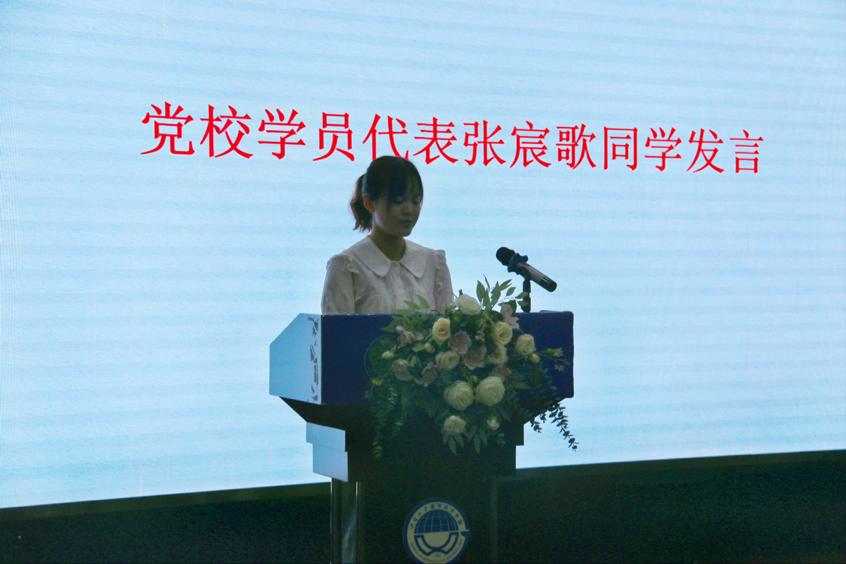 接下来,党校学员代表张宸歌发言,表达了自己对中国共产党的认识、入党动机和坚定决心并代表全体学员向党组织表态:学员们必将坚定理想信念,共担时代责任,同谋民族复兴;刻苦学习,提升能力,掌握本领;身体力行,积极投身社会实践,展现新时代老员工的精神风貌,努力为人民服务。