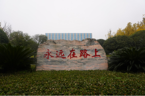 基地前永远在路上的刻字石